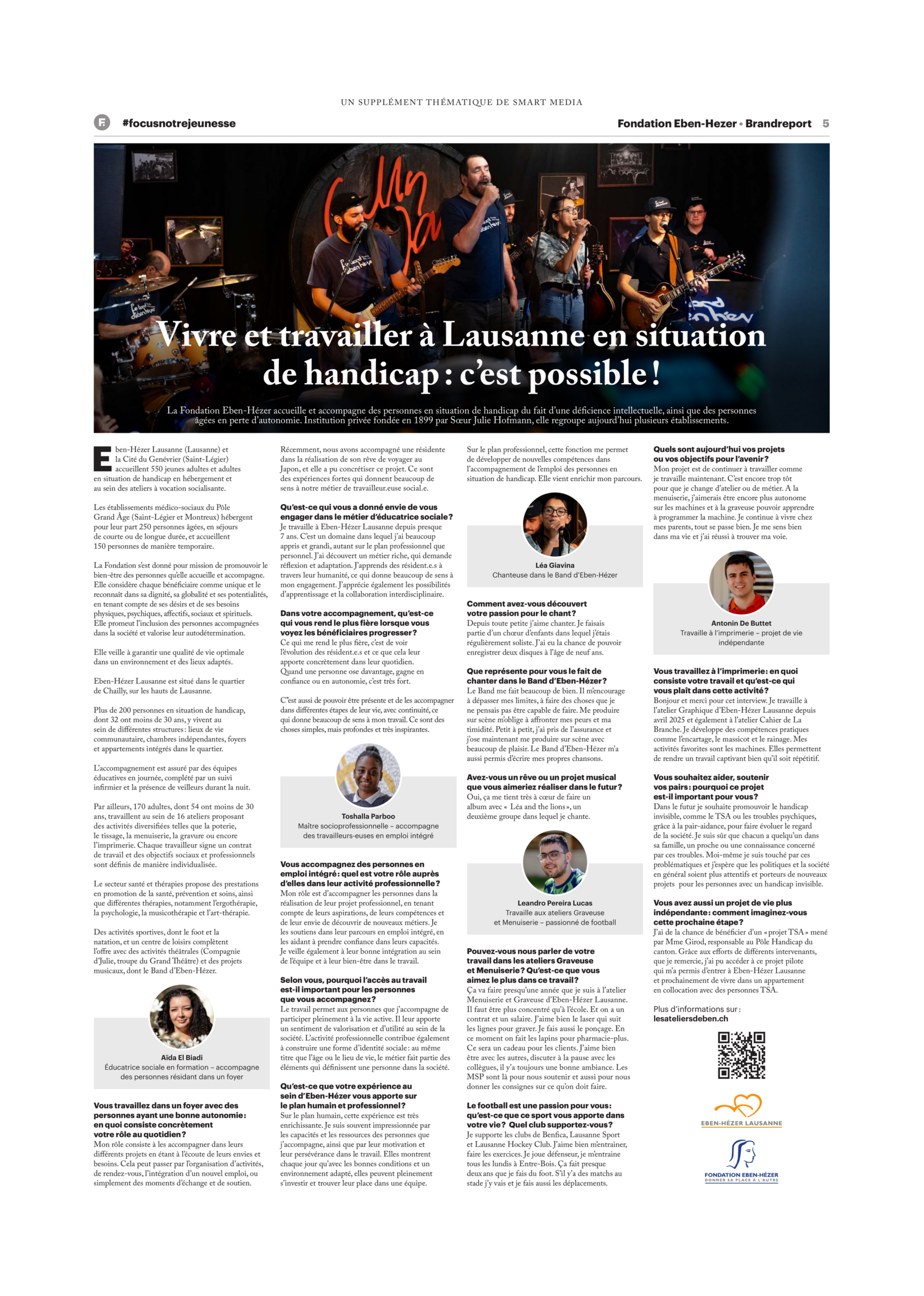 Un magnifique article sur Eben-Hézer Lausanne dans Le Matin Dimanche! Vivre, travailler, chanter, s’épanouir… En situation de handicap, tout cela est possible et ça se passe ici, à Lausanne. Le 22 mars dernier, le supplément Notre Jeunesse du Matin Dimanche a mis en lumière cinq personnes qui vivent et travaillent à Eben-Hézer Lausanne: