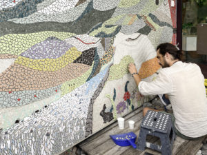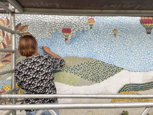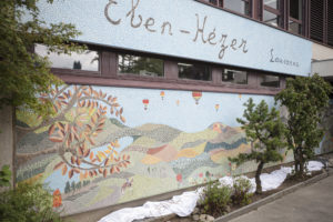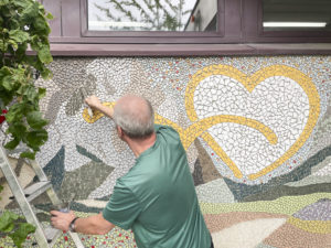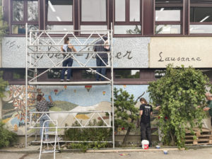 Une grande mosaïque a été réalisée sur le mur de l’entrée de la Maison des Chavannes d’Eben-Hézer Lausanne par l’association Embellimur entre 2022 et 2023.