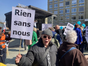 « Une atmosphère calme et sereine, bien que ce que l’on défend c’est des acquis sociaux pour les personnes en situation de handicap. Dommage que la manifestation ne se soit pas déroulée sur la Place fédérale. Si l’événement s’était déroulé sur la Place fédérale, on aurait peut-être été plus entendus. »