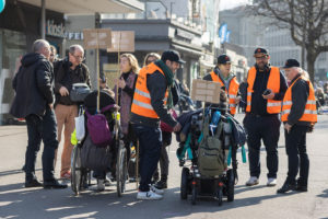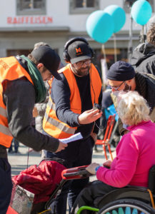 Une belle collaboration entre Ricochets et Reporteurs sans barrières Le reportage que Ricochets a fait sur la manifestation du 9 mars a été réalisé en collaboration avec nos collègues de Reporteurs sans barrières . Reporteurs sans barrières est un nouveau projet qui a été lancé par Inclusion handicap. Inclusion handicap est une association qui réunit les organisations suisses des personnes en situation de handicap. Le but de Reporteurs sans barrières est de faire plus entendre la voix des personnes en situation de handicap dans les médias. Nos collègues de Reporteurs sans barrières nous ont aidé à organiser nos interviews lors de la manifestation. Senad Gafuri, le coordinateur du projet, nous a mis en relation avec Maurizio Coppola qui nous a traduit les réponses d’une partie des personnes interviewées de l’allemand vers le français. Un grand merci à toute l’équipe des Reporteurs sans barrière pour son très bon accueil et surtout pour son aide !