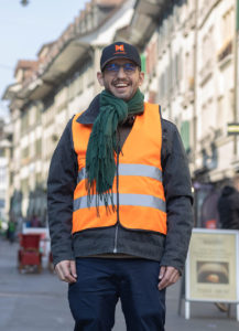 La rédaction de Ricochets a décidé de faire un reportage sur la manifestation. Nous nous sommes retrouvés à la gare de Lausanne le 9 mars à 9 heures pour nous rendre à Berne. Etaient présents : François Desgalier, Bernadette Oberson, Caroline Goretta, Jules Brischoux, Omar Odermatt et José Niangu Nginamau. Dans le hall de la gare, Omar nous a distribué les casquettes Estimédia et les sandwichs pour la croque de midi. Niangu et Omar sont allés chercher les billets de train et nous avons pris un train direct pour Berne. Arrivés à la gare de Berne, nous avons pris des photos du groupe, puis nous nous sommes dirigés en direction de la Waisenhausplatz pour rejoindre le lieu de la manifestation. Nous avions rendez-vous vers 11 heures avec Senad Gafuri qui est le coordinateur de Reporteurs sans barrières pour enregistrer une vidéo (lire l’encart ci-dessous). Puis la manifestation a commencé avec des discours. Ensuite, Reporteurs sans barrières a distribué des réveils aux manifestants. On a réglé l’heure des réveils et ils ont sonné tous en même temps à l’unisson pour rappeler aux politiciens que la Suisse a signé la CDPH 2014 et pour leur faire comprendre qu’il faut maintenant se réveiller pour l’appliquer ! Espérons maintenant que les politiciens sortent de leur sommeil et appliquent sérieusement la CDPH. Ensuite, nous avons poursuivi les interviews et nous avons fait une jolie photo du groupe sur la Place fédérale avec en arrière plan le Palais fédéral. Et pour terminer, nous avons pris un petit café avant de rentrer à Lausanne.