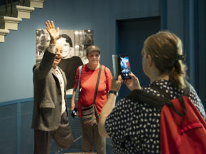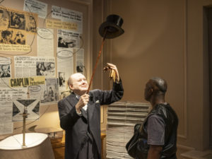 Après, nous sommes allés dans une salle de cinéma spéciale pour regarder des extraits de films de Chaplin. Et tout d’un coup, l’écran s’est levé et nous pouvions comme entrer dans le décor. C’est comme si nous étions devenus les acteurs d’un film. Nous avons pu voir les différents lieux qui ont été reproduits et où ont été tournés ses différents films. Nous avons même pu mettre nos têtes sur le corps d’un mannequin qui portait le vrai costume du dictateur (que d’éclats de rires !).
